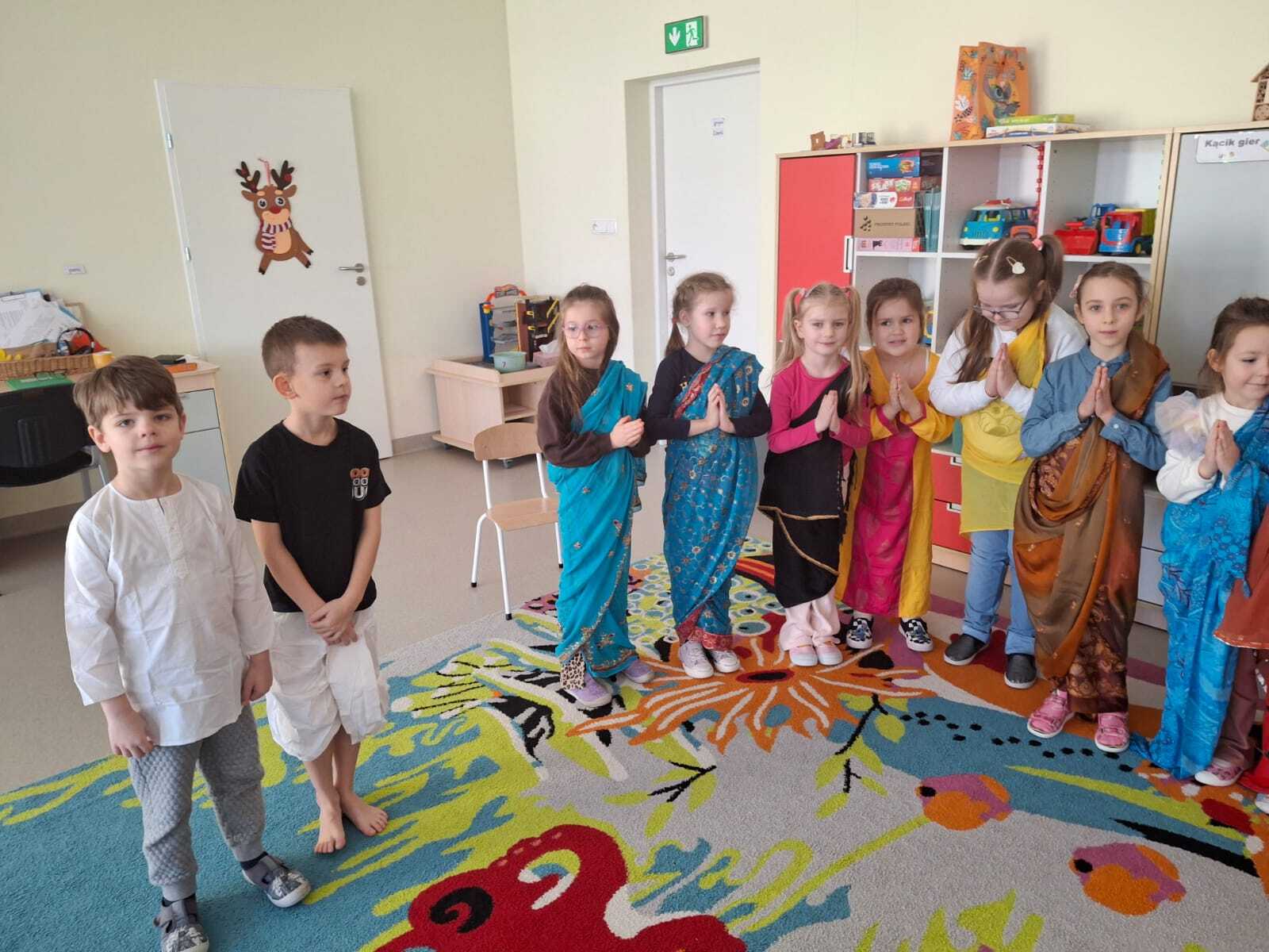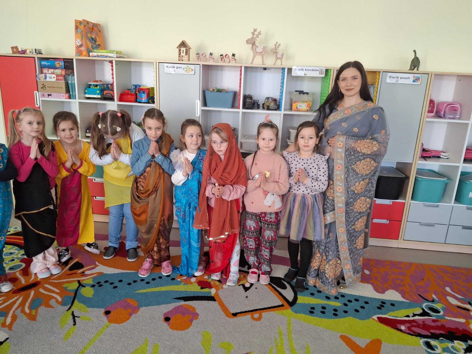 Wczoraj w grupie "Literki" odbył się dzień Indii. Dzieci dowiedziały się gdzie leżą Indie oraz jak wyglądają tradycyjne stroje Hindusów.