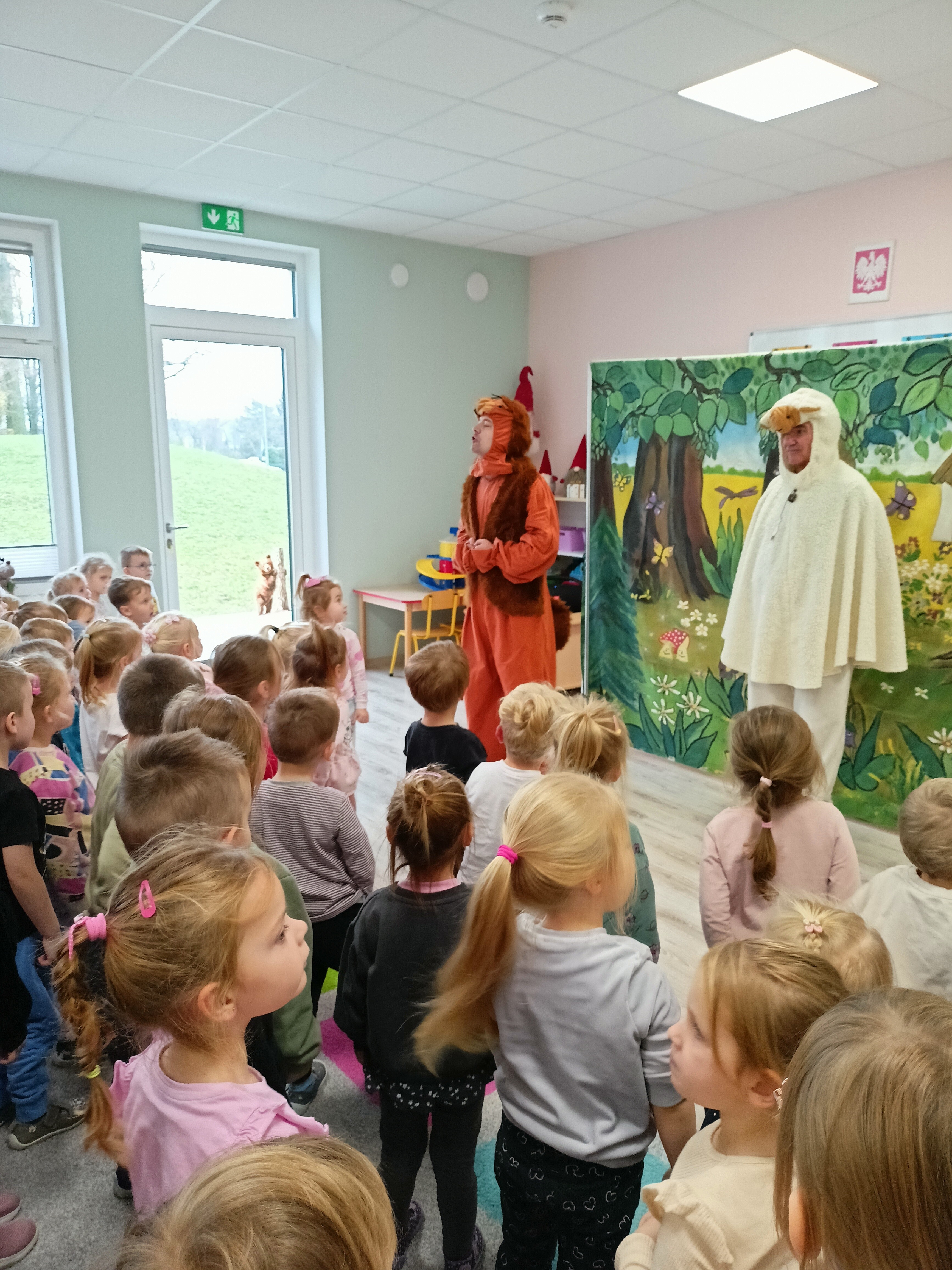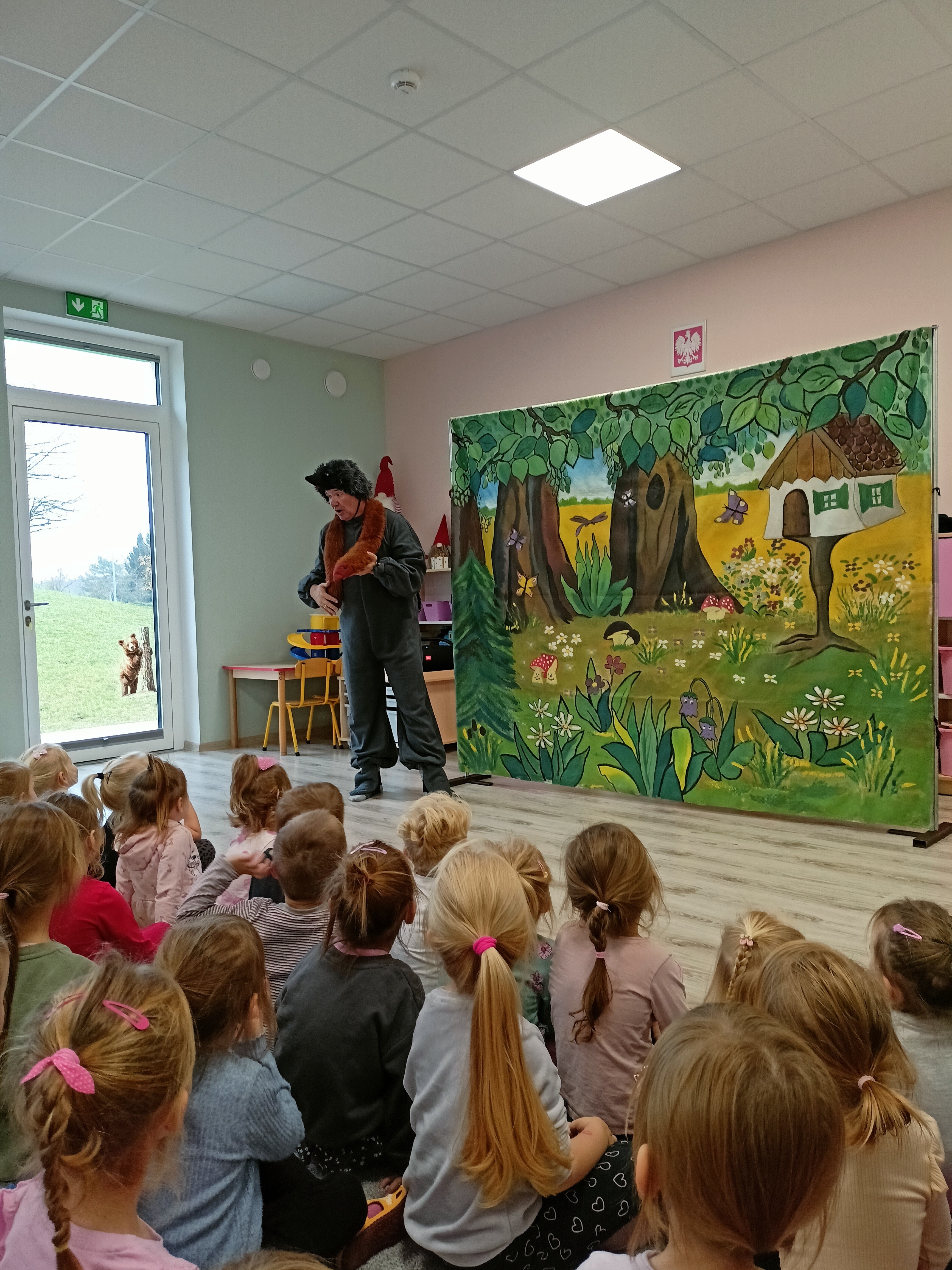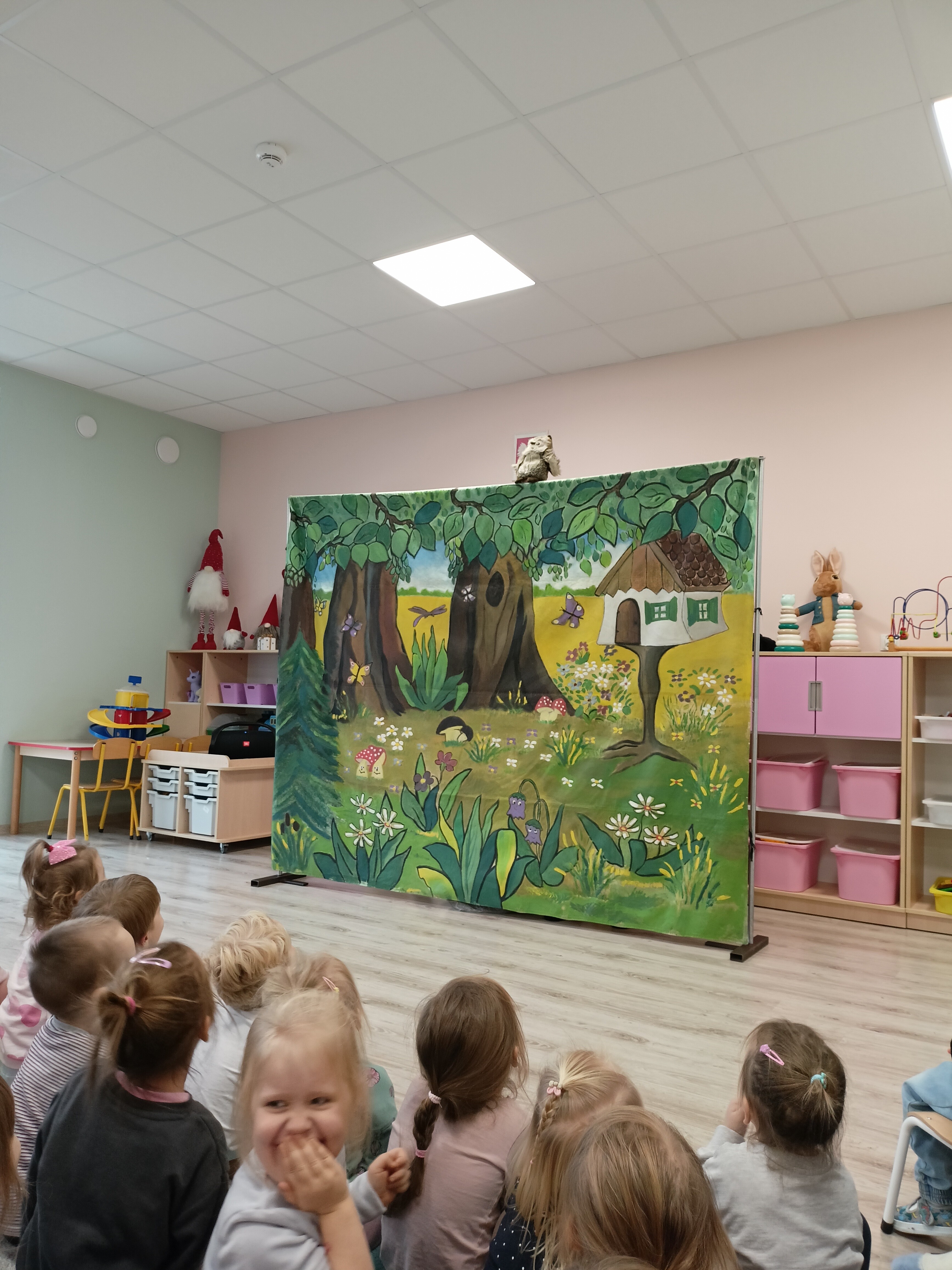 Dziś przedszkole gościło aktorów teatralnych, którzy zaskoczyli nas wspaniałym poczuciem humoru i umiejętnością zaciekawienia dzieci. Wszystkie dzieci miały okazję obejrzeć spektakl pt. "Futerko Jeżyka", w którym jeżyk zostaje oszukany przez chochlika i przemienia się w owieczkę, po czym zdaje sobie sprawę, że jego naturalne "futerko" – czyli kolce – jest najlepszą obroną i nie powinien się go wstydzić. Treść bajki uczy dzieci, że nie należy oceniać innych po wyglądzie.